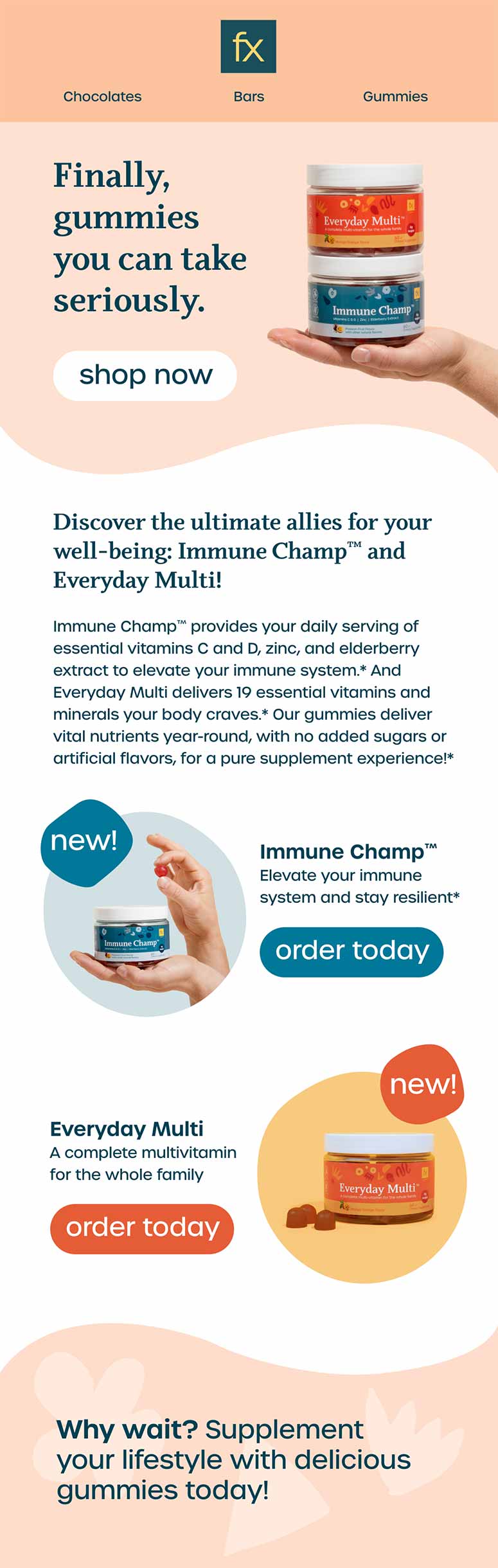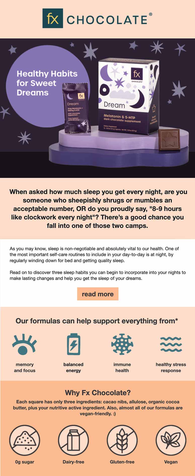 Since the brand’s inception, email communication for Fx Chocolate was designed using Klaviyo. We were unable to use brand fonts and were restricted to 2-3 column layouts and uninspired designs.